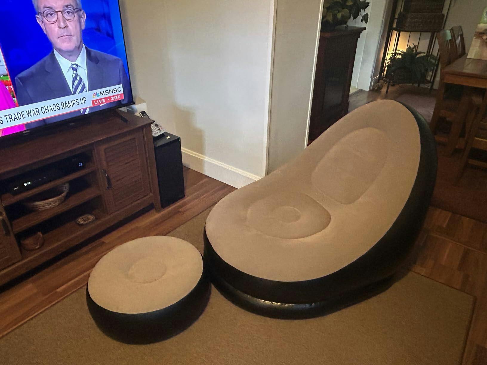 Stop suffering from uncomfortable chairs that hurt your back and waste your money. This 2-in-1 inflatable sofa with ottoman gives you luxury comfort in 3-5 minutes - perfect for your home, office, or outdoor trips.