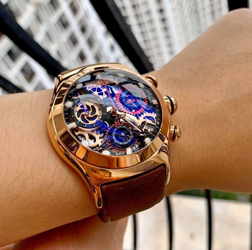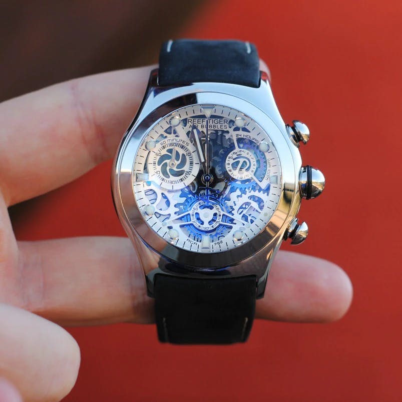 Galaxial Dial: The large dial is enough to include three sub-dials for hours, minutes, seconds, and a date display.