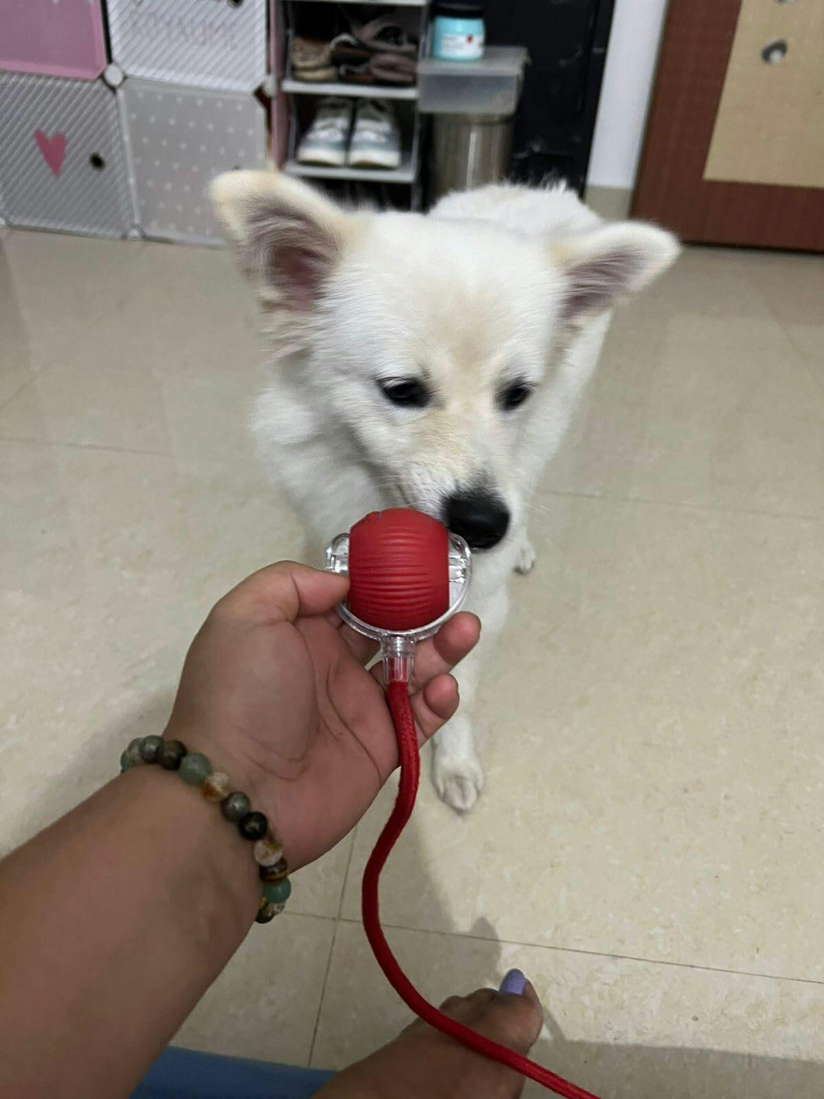 - Keeps pets busy when home alone—no more destroyed shoes or scratched sofas