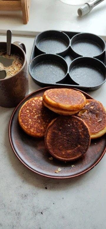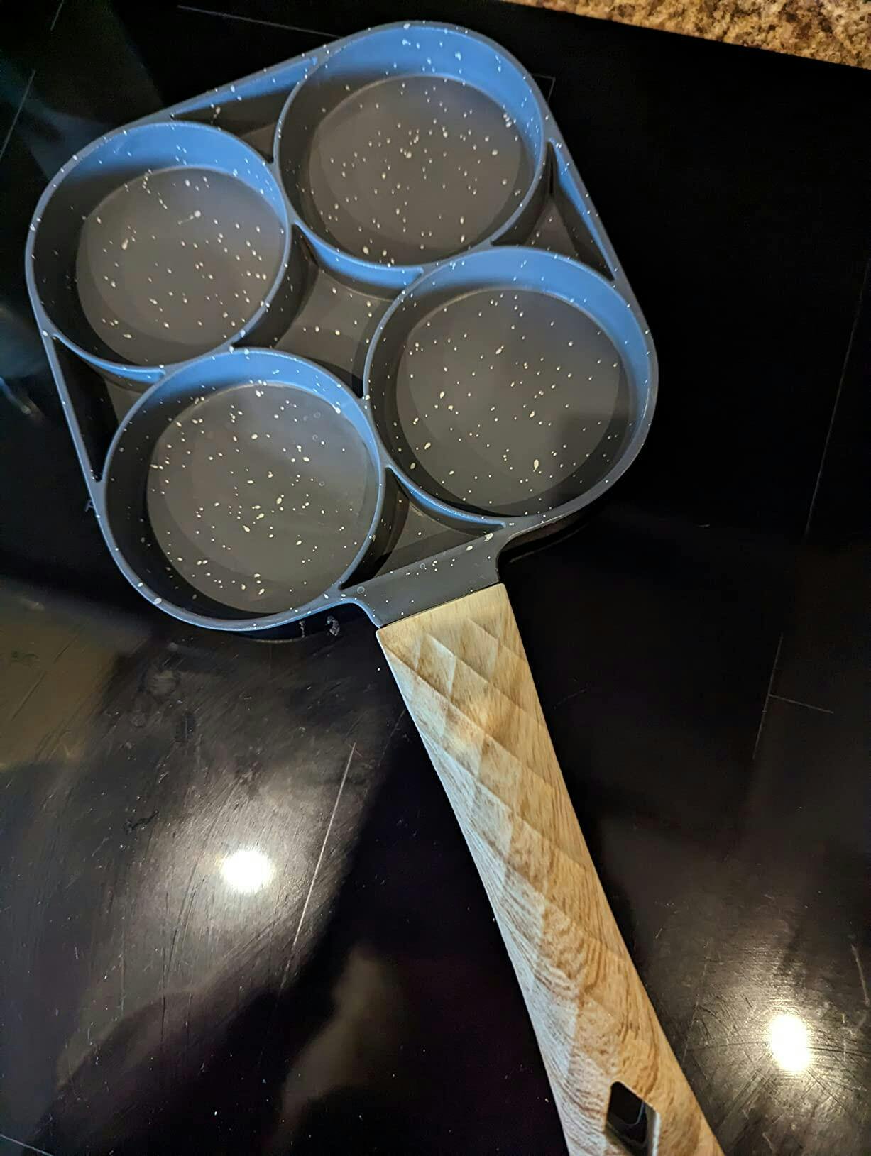 Never worry about food being spilled above the pan. Extra deep holes on this pan can make four fried potato cakes at a time without over spillage .