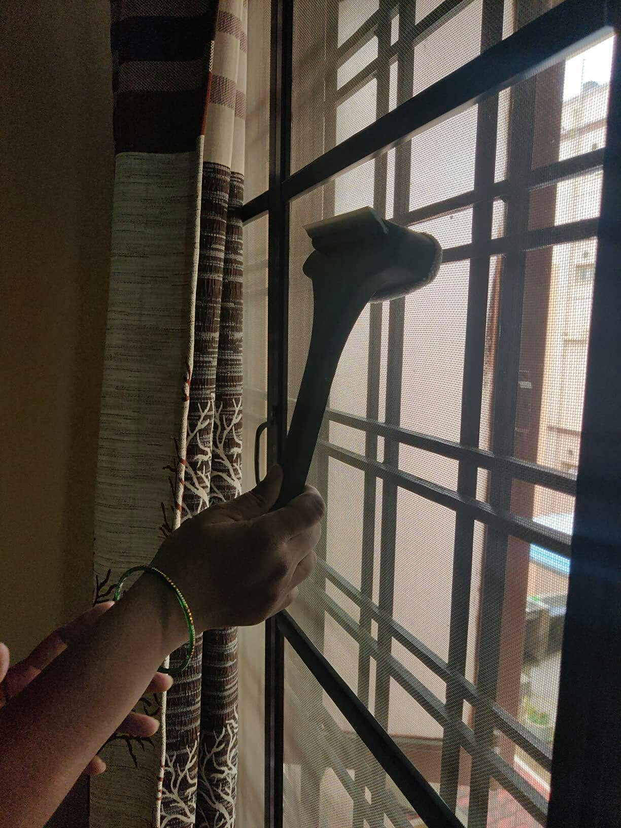 A double-sided cleaning brush equipped with a duster on one side and a wiper on the other. One of the best mesh cleaning brushes, Double-sided Window Cleaning Brush Pro works like a breeze. The front is provided with an effective duster that can penetrate into every slit of the mesh to eliminate dust, while the back is provided with a powerful squeegee to wipe clean accumulated dirt spots and stubborn water marks.