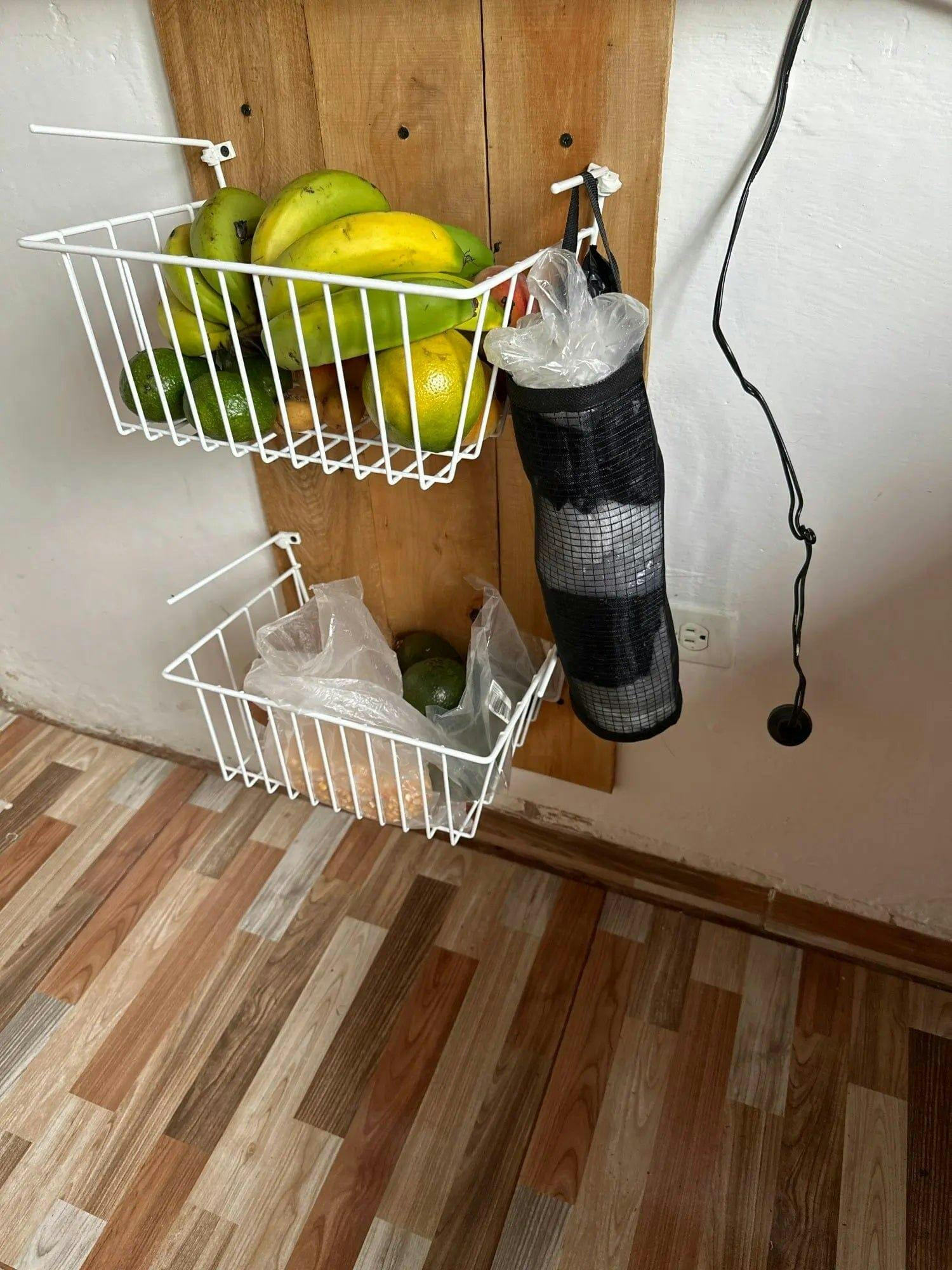 Space-Saving and Versatile: Equipped with a widened handle and a hanging hook, this holder can be effortlessly hung in any kitchen space, perfect for organizing a variety of bags including plastic, shopping, and kitchen rolls.
