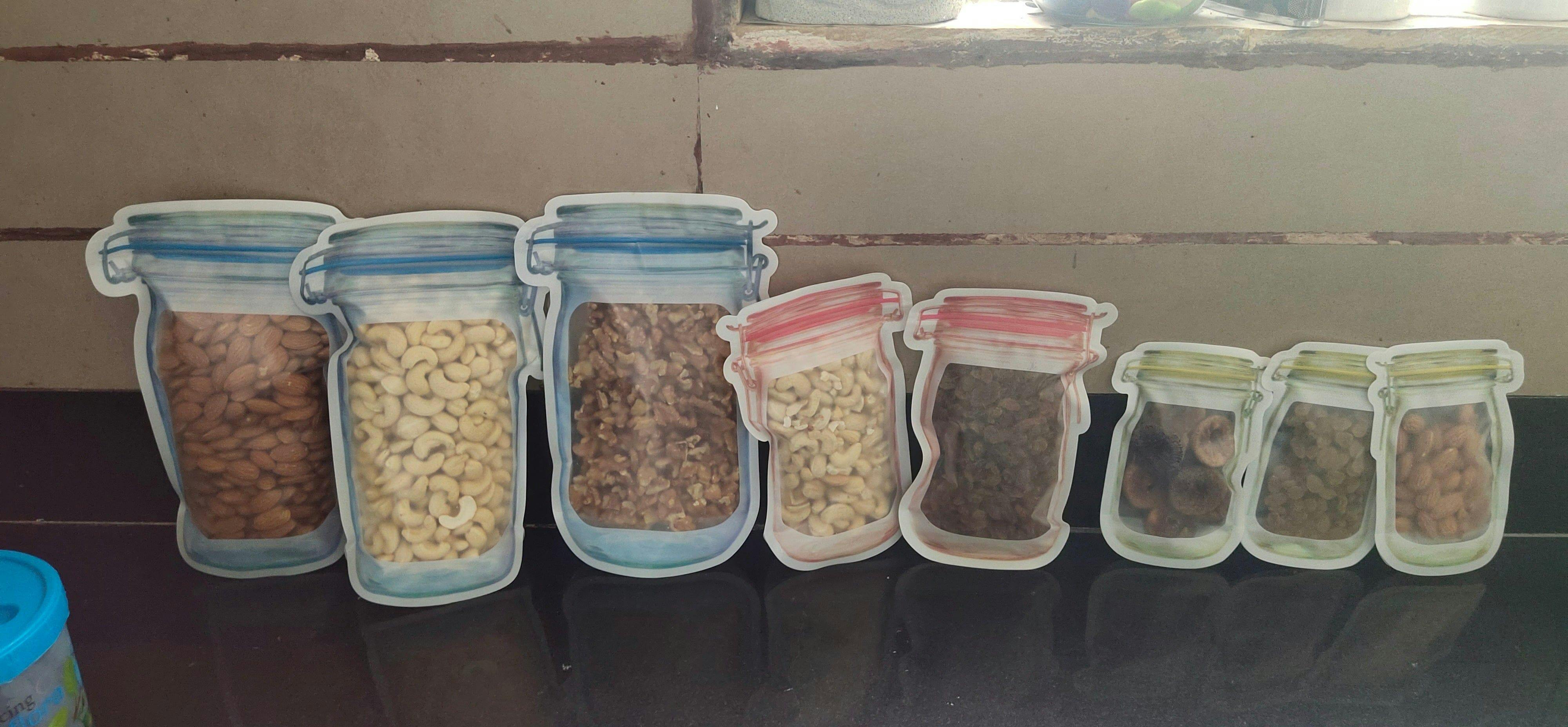 Say goodbye to heavy jars and hello to our mason jar design storage bags. Perfect for pantry storage, refrigerated storage, or snacks on the go, these bags are practical, durable, and eco-friendly.