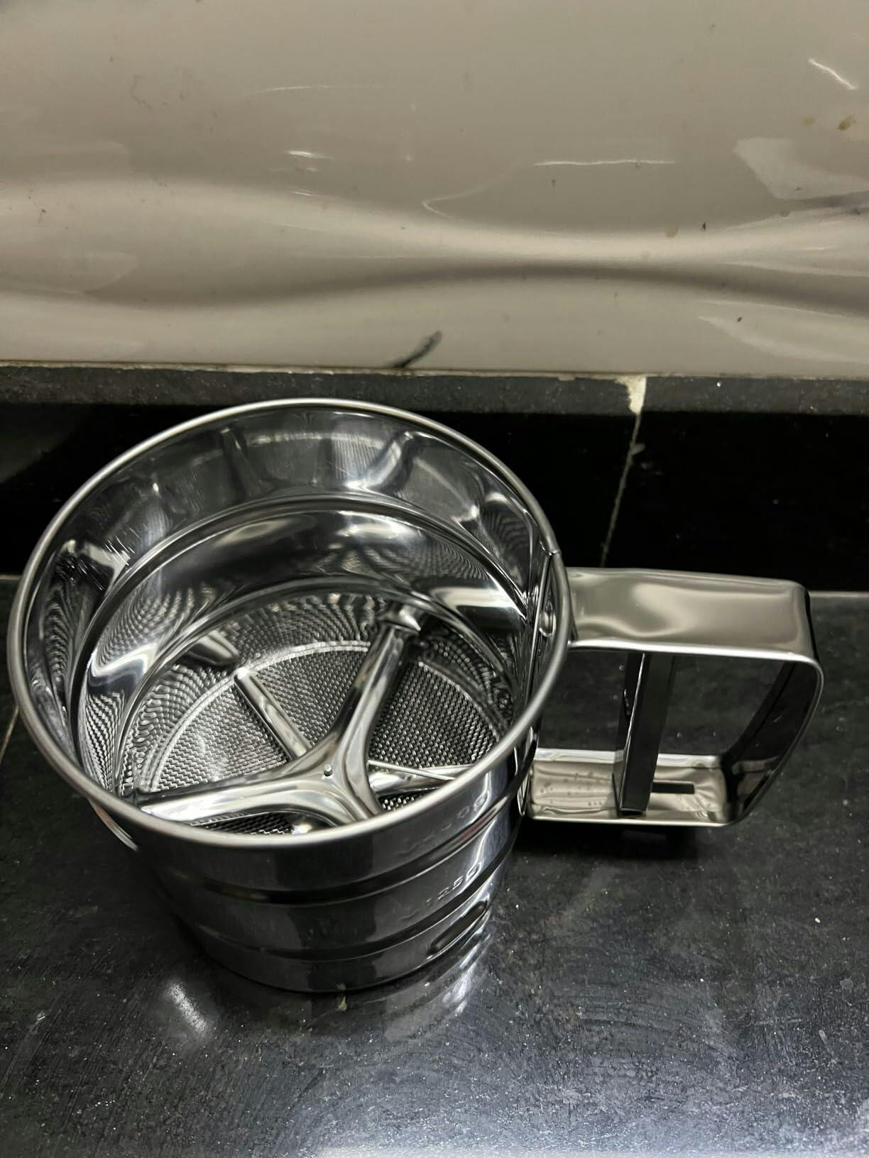 Tired hands from old sifters? Lumpy flour ruining your rotis and cakes? Our Stainless Steel Semi-Automatic Flour Sifter fixes this in seconds. Just press once — get perfectly smooth flour every time. No more lumps, no more mess, no more tired hands.
