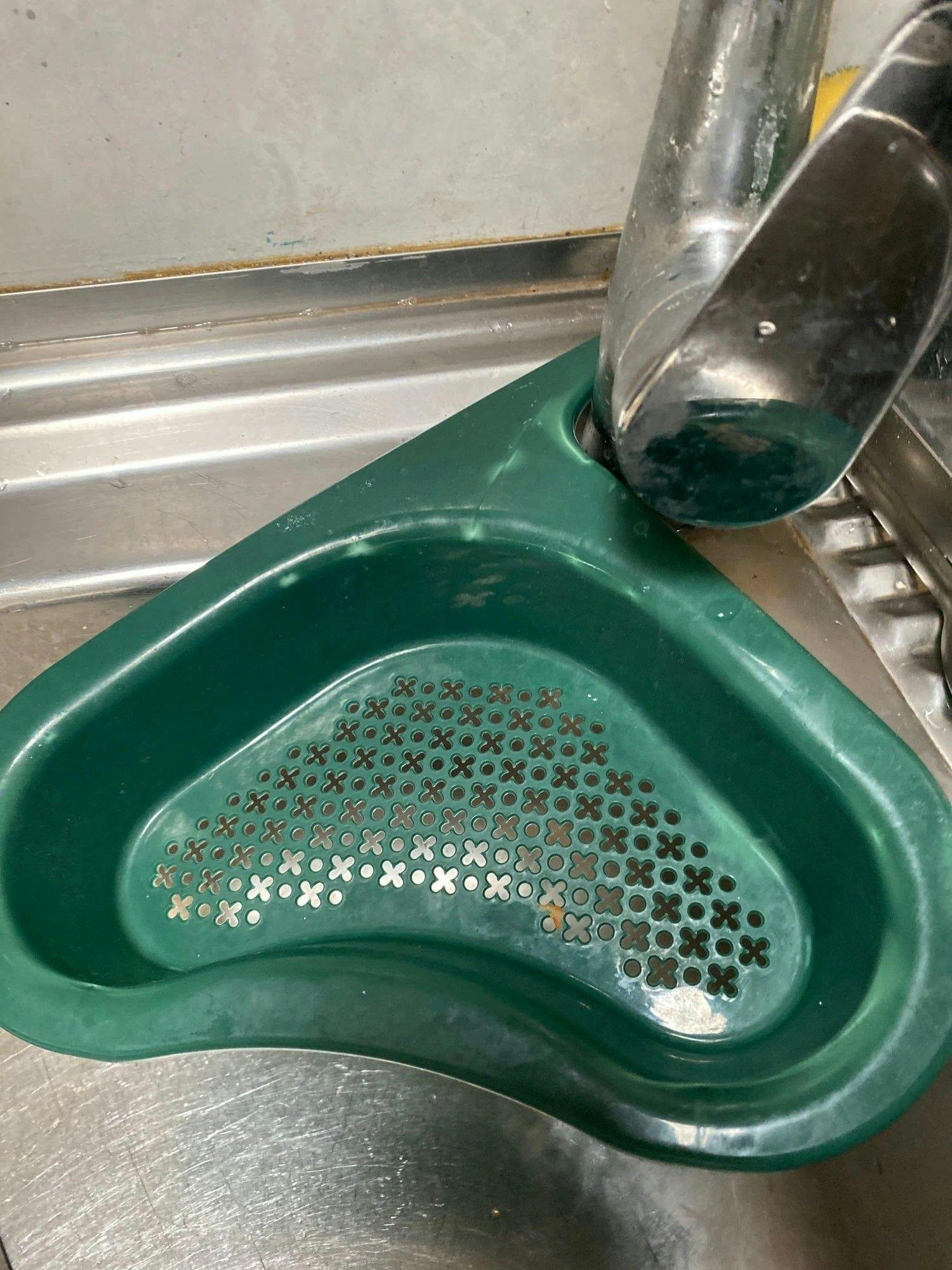 Saves Space: Unique triangle shape (27x24x8cm) fits in sink corners