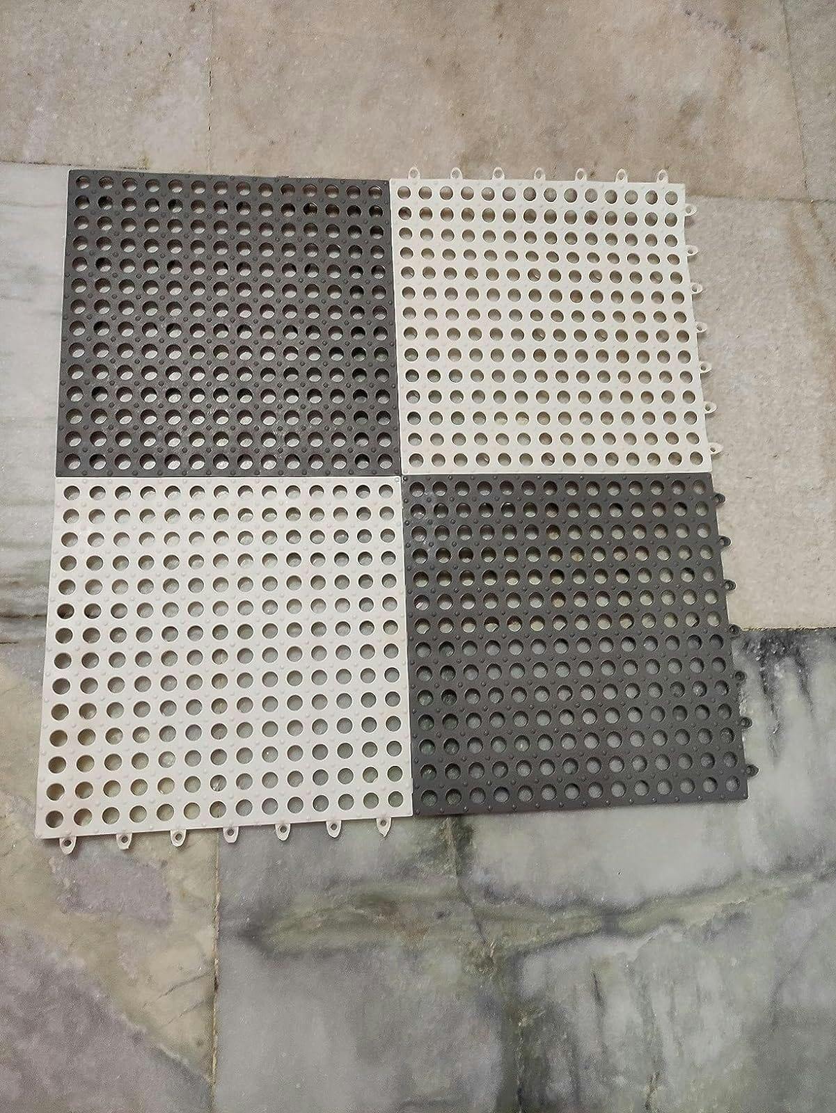 Plastic Bath Mat with Drain Holes and Drainage (Set of 6)