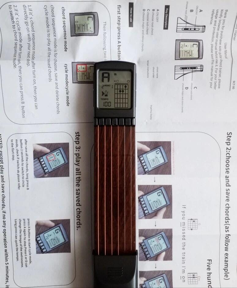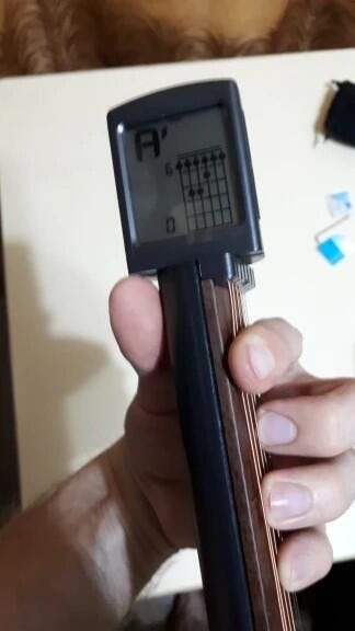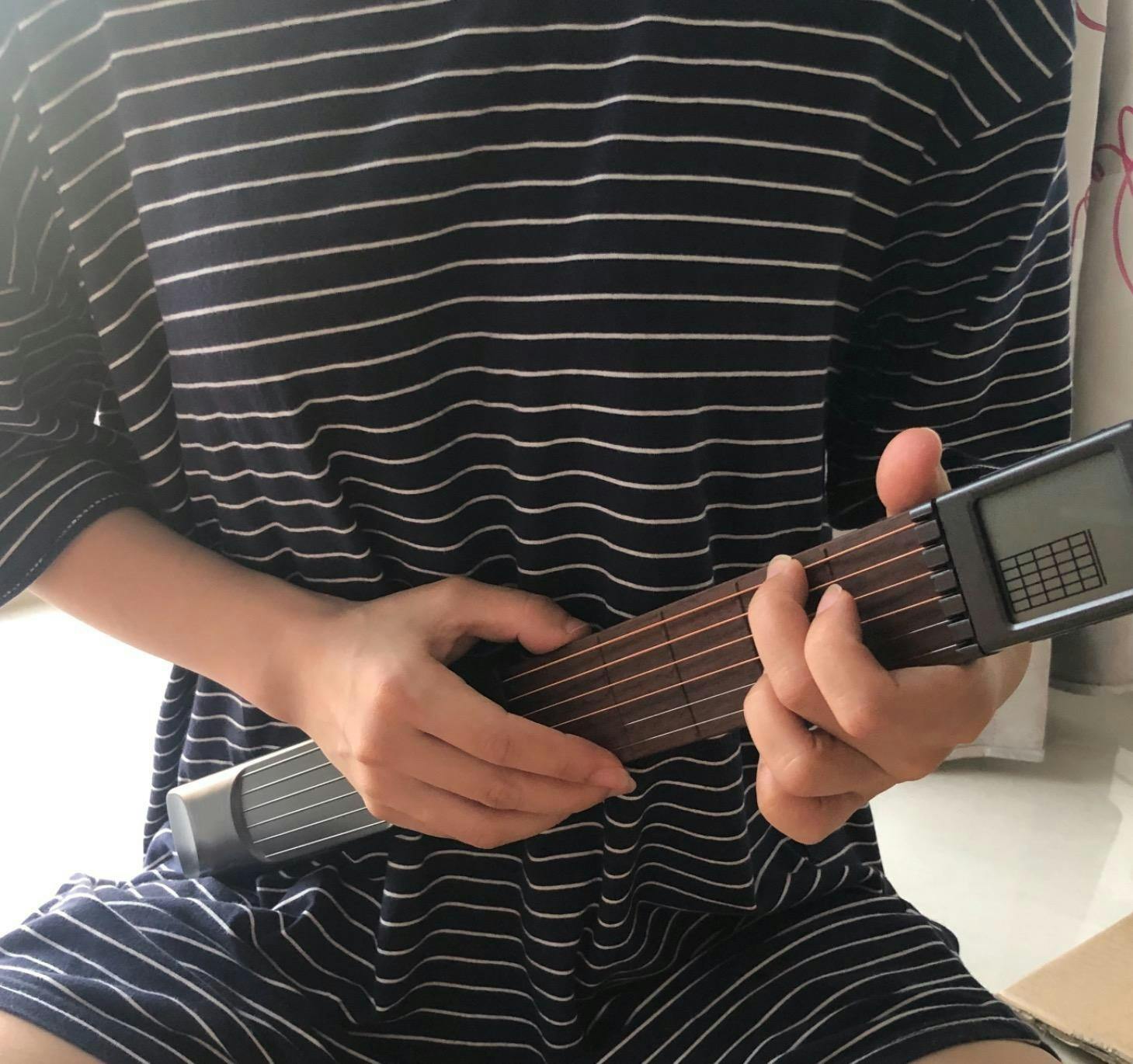 Pocket guitar trainer that will help you learn and master every chord without actually carrying a full-size guitar! Pocket Guitar Trainer is the most compact and effective guitar trainer. Equipped with an LCD guide screen, it lets you practice finger placements. Set the screen to a comfortable angle and practice anytime.