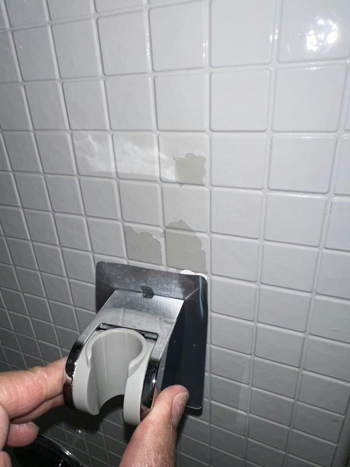 No wall damage! The adhesive is fully waterproof and won't fall off even when wet. Wait 24 hours after installation for best results.