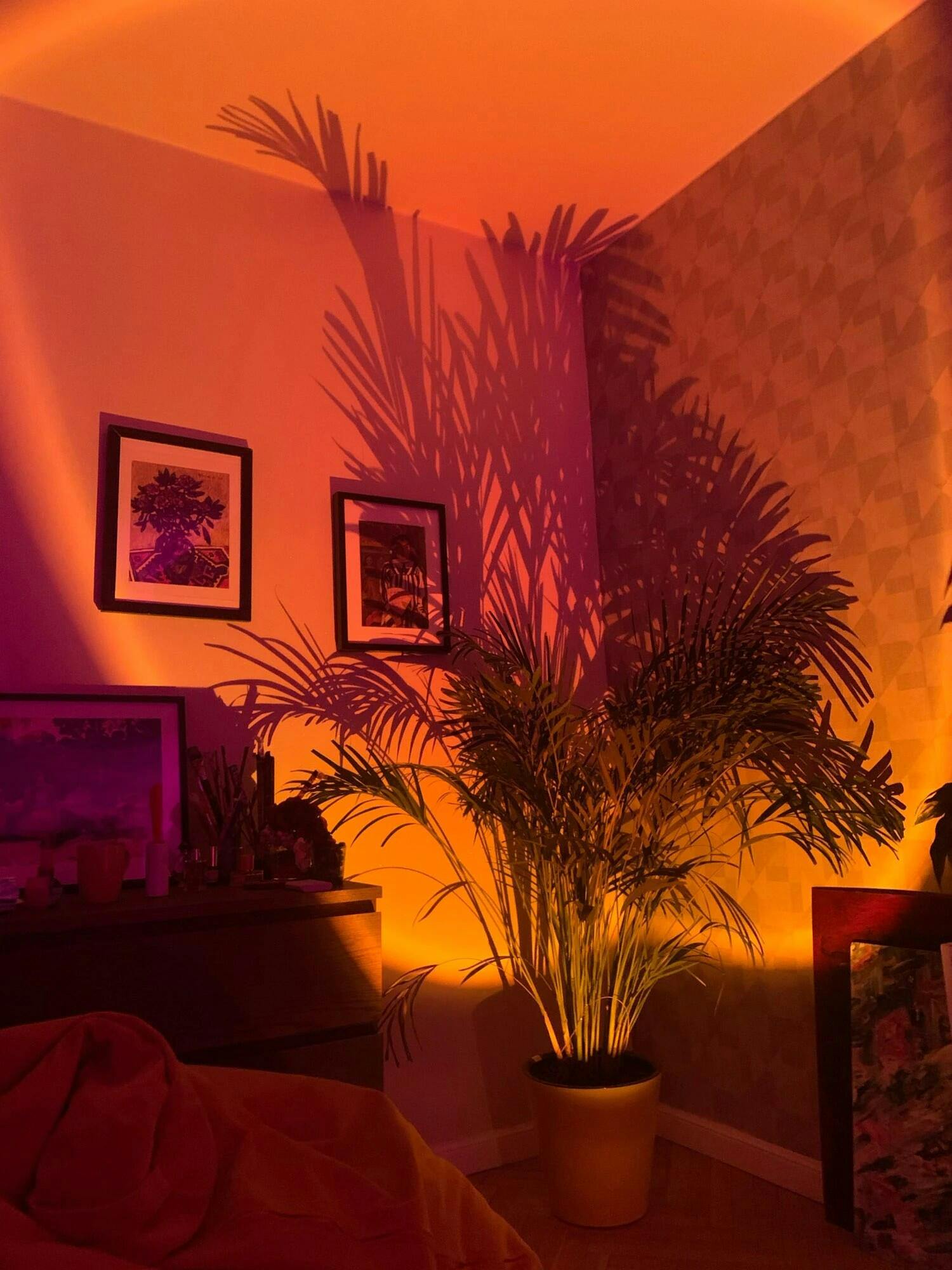 Sunset Projection Lamp, a Sunset Projector Lamp to fill your space with a warm and soothing sunset projection!! Sunset Projection Lamp casts a circular glowing projection on the walls or ceiling. It creates a relaxing aura that helps you improve your sleep cycle. Suitable for bedroom, living room, drawing room, etc. Use it as a night light or to decorate your space. The possibilities are endless!!