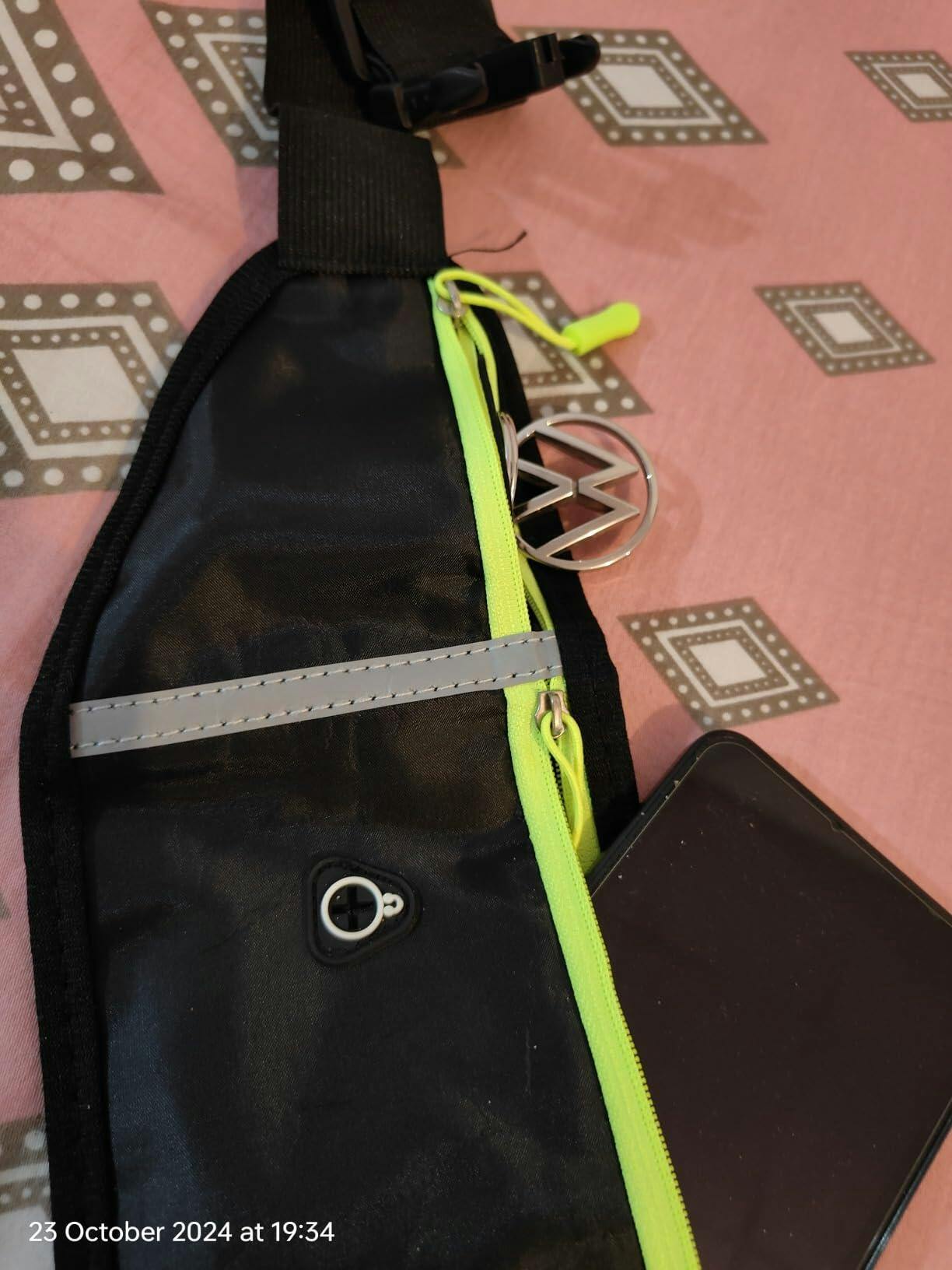 - Load your items - phone in main pocket, keys and cards in side pockets