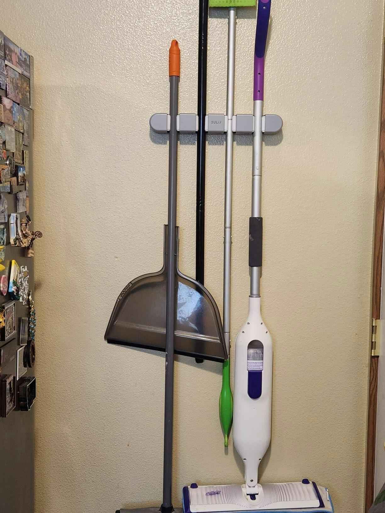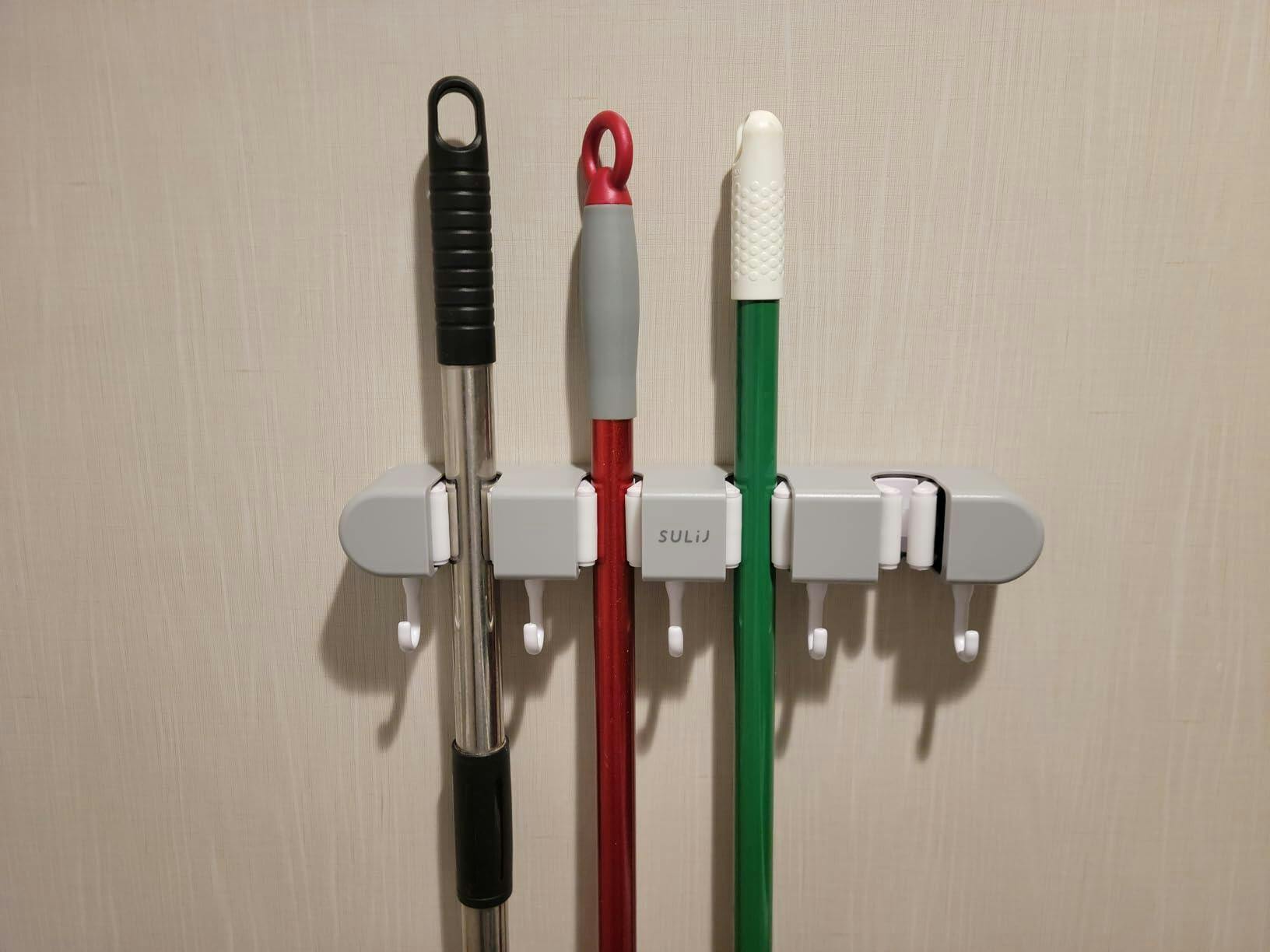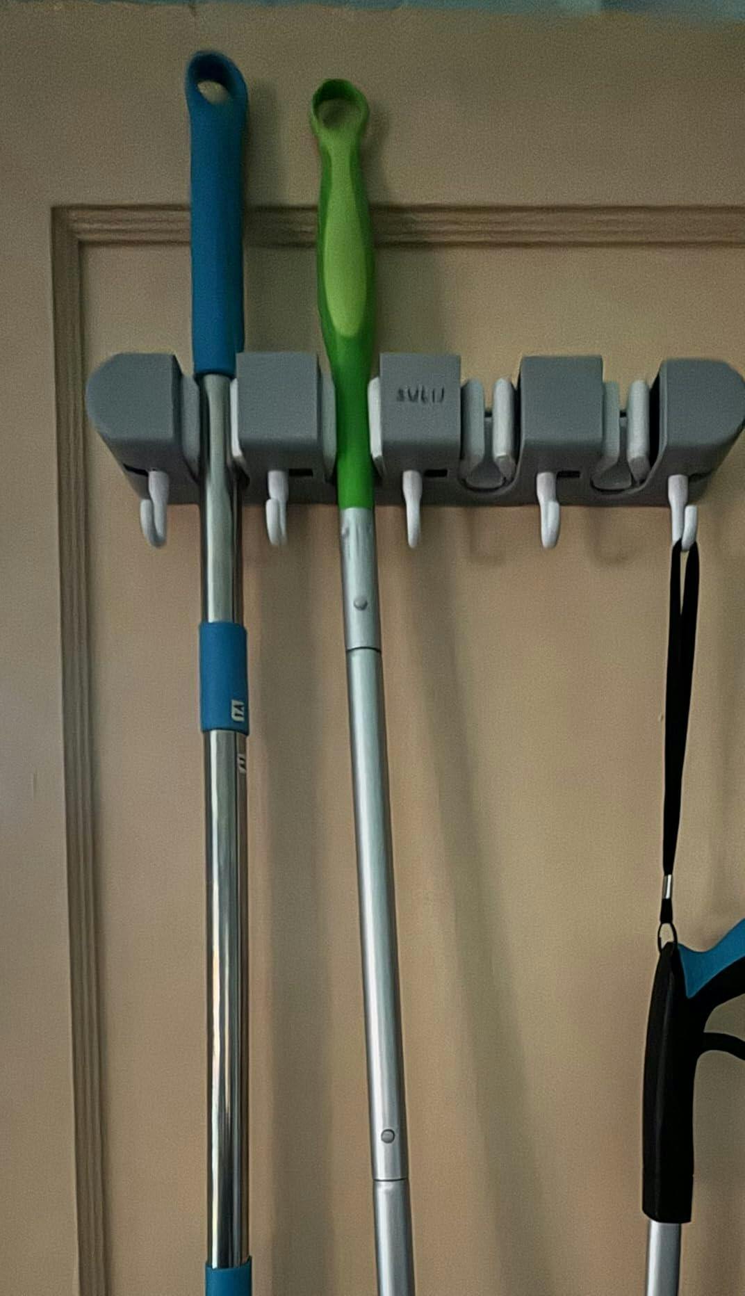 Tired of messy floors and cluttered corners? This wall-mounted broom holder keeps up to 11 tools organized and off your floor. No more searching for lost cleaning tools or tripping over fallen mops.